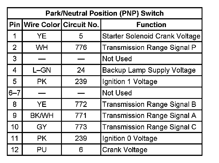 Park/Neutral Position (PNP) Switch: