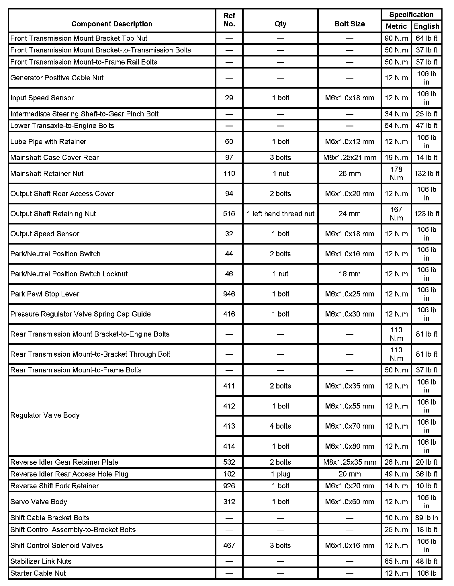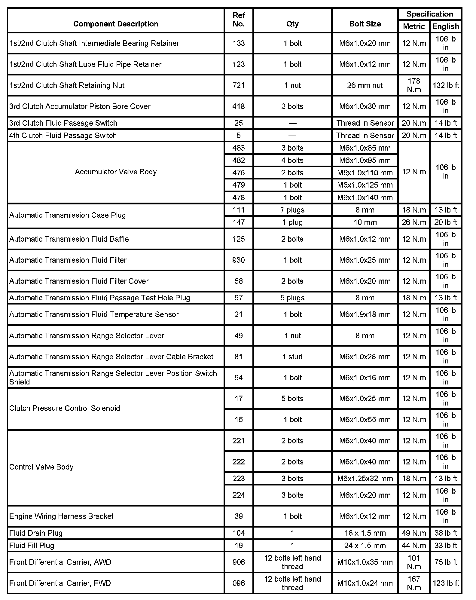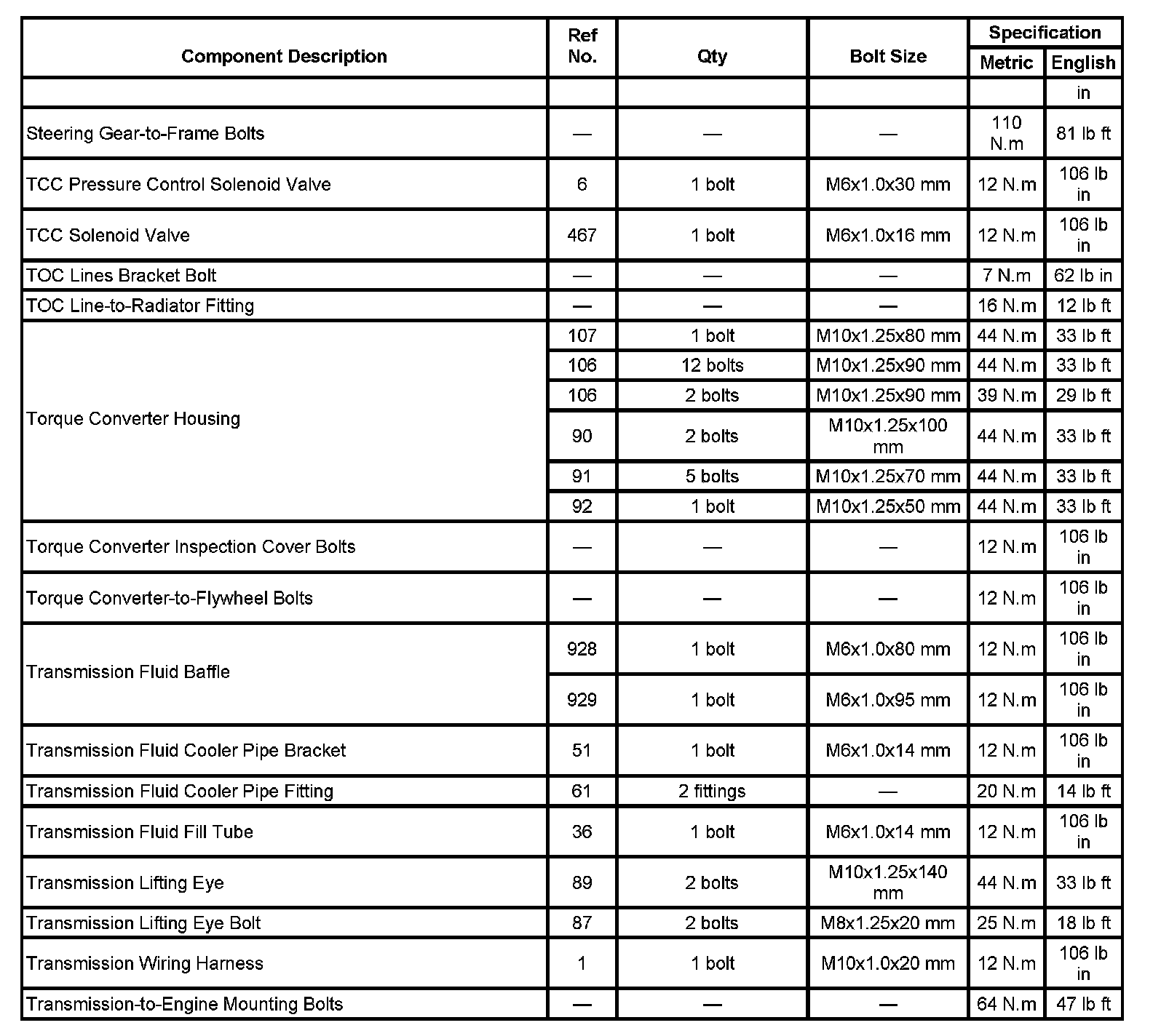 Fastener Tightening Specifications: