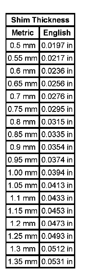Shim Size Specifications