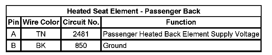 Heated Seat Element - Passenger Back