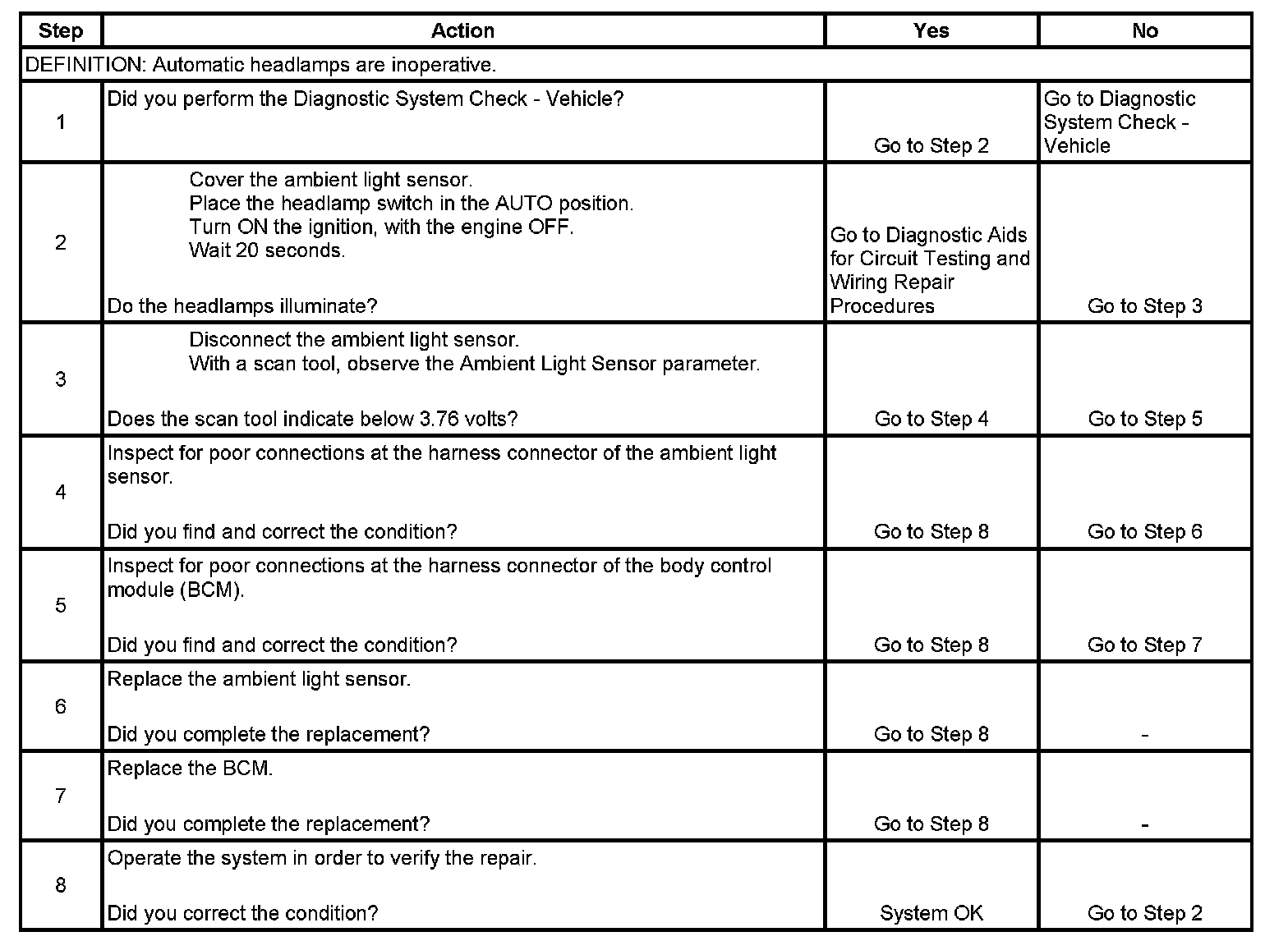 Automatic Lamp Control Inoperative