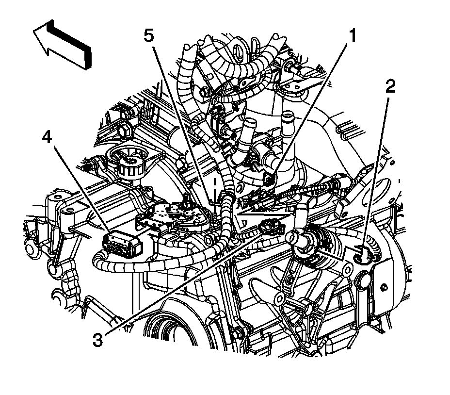 4. Disconnect the engine wiring harness electrical connector (1) from the engine coolant temperature (ECT) sensor.