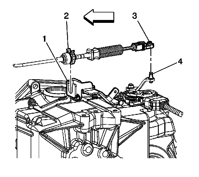 2. Disconnect the shift control cable (3) from the range select lever (4).