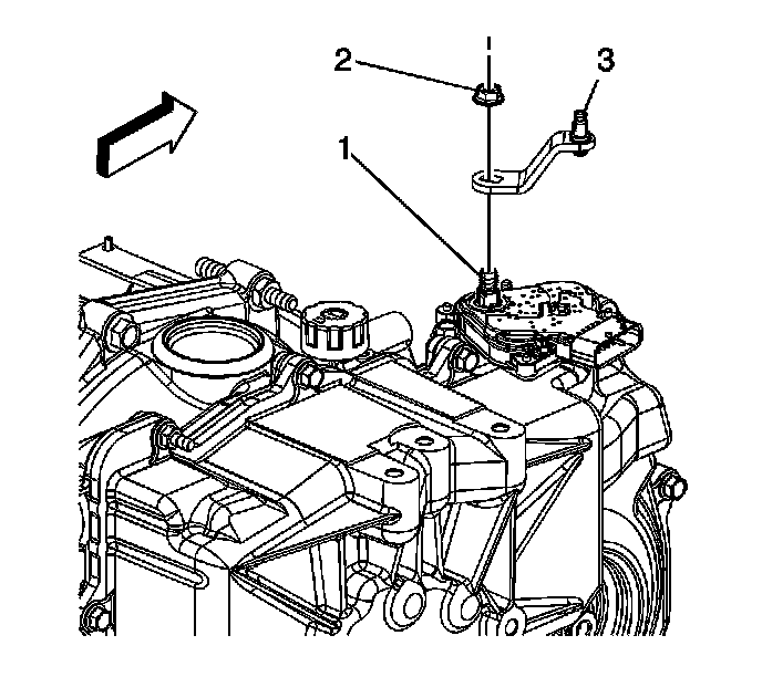 8. Install the transaxle range select lever (3) to the transaxle manual shaft (1).