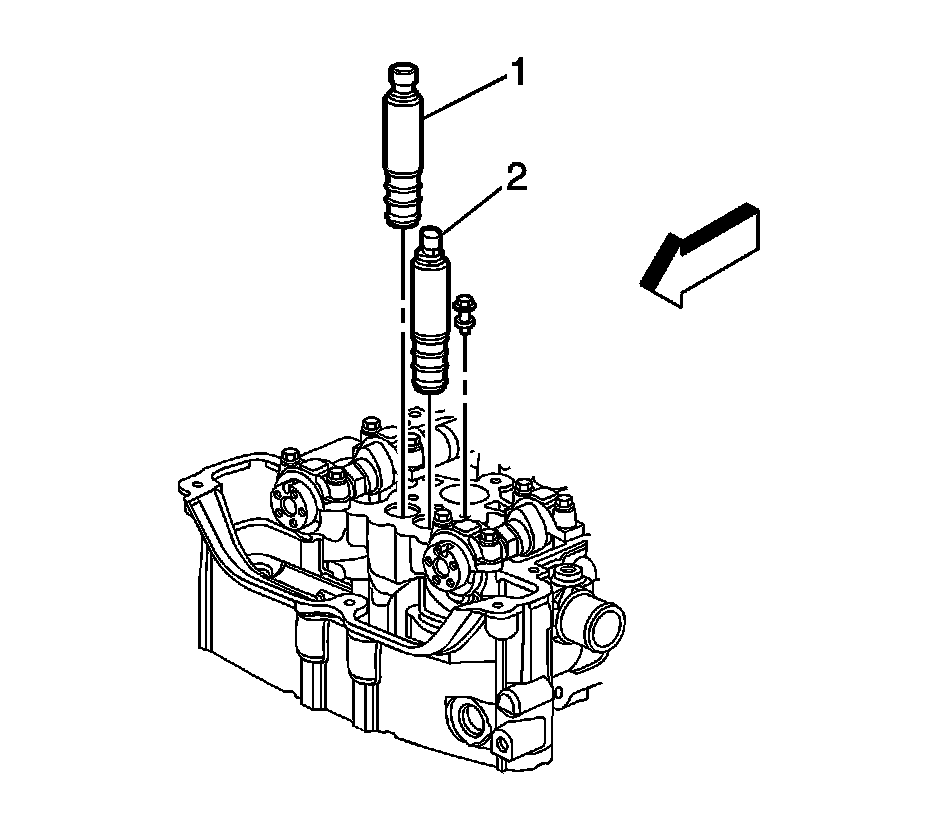2. Install the intake (2) CMP actuator solenoid valve and bolt, if required.