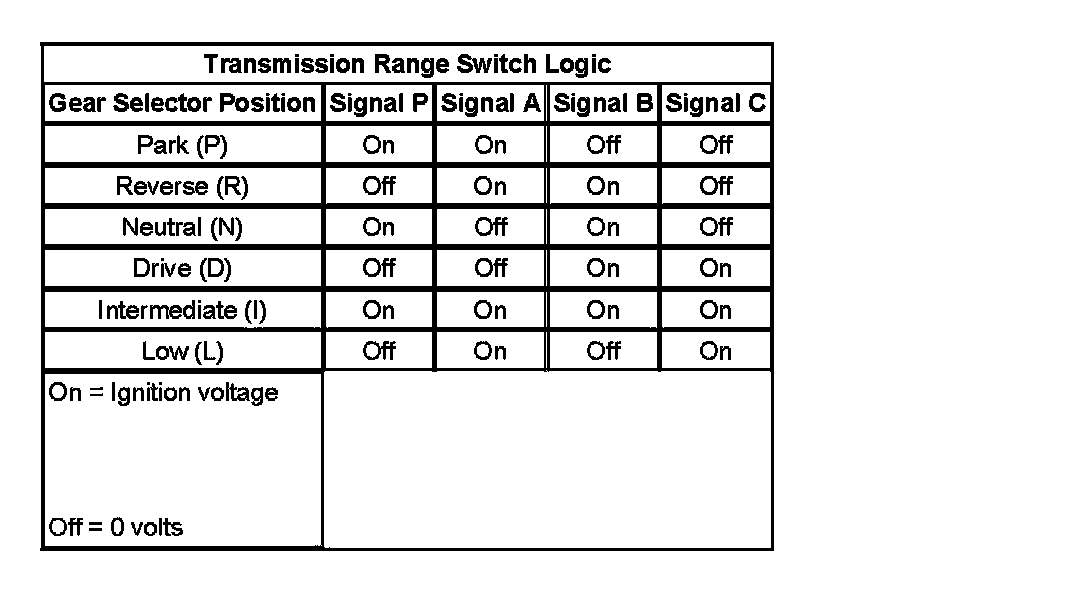 Transmission Range Switch Logic: