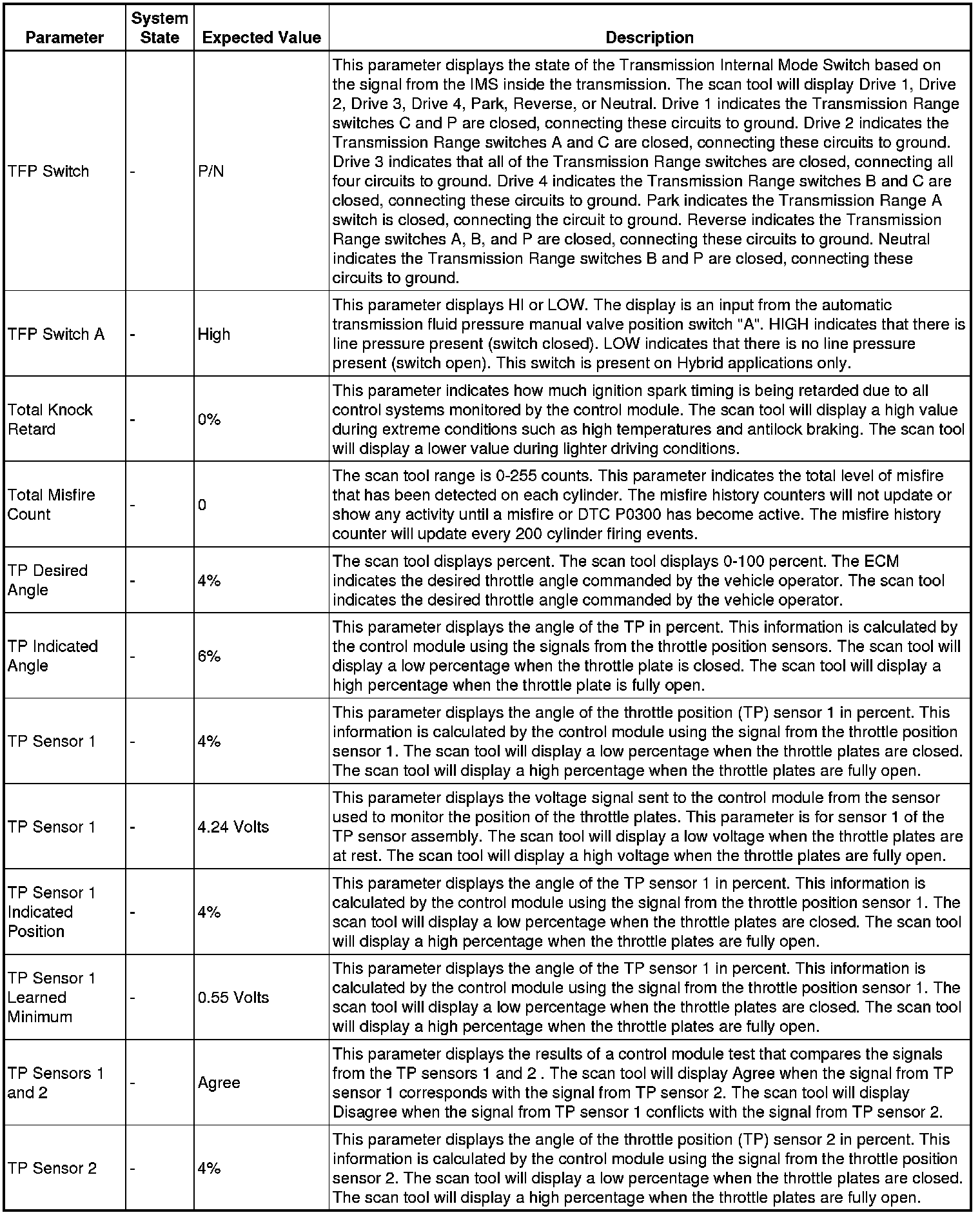 The Engine Scan Tool Data List contains all engine related parameters that are available on the scan tool. The list is arranged in alphabetical order.