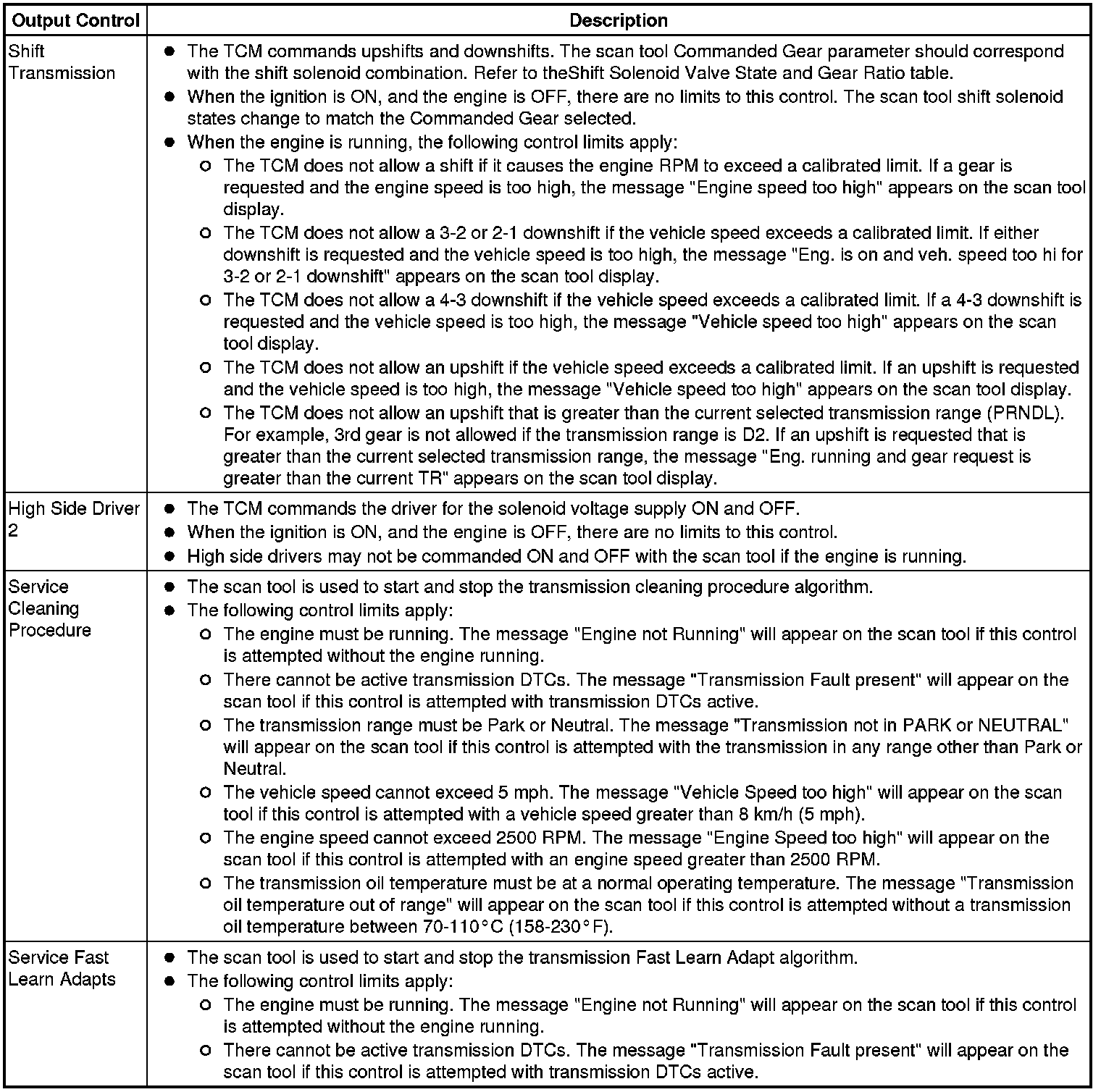 The Transmission Control Module Scan Tool Data List contains all transmission related parameters that are available on the scan tool. The list is arranged in alphabetical order. A given parameter may appear in any one of the data lists, and in some cases may appear more than once, or in more than one data list in order to group certain related parameters together.