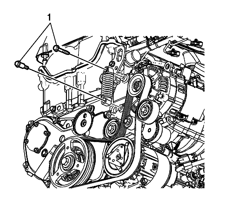 3. Install the tensioner spring bolts (1) to the tensioner and tighten to 22 Nm (16 lb ft).
