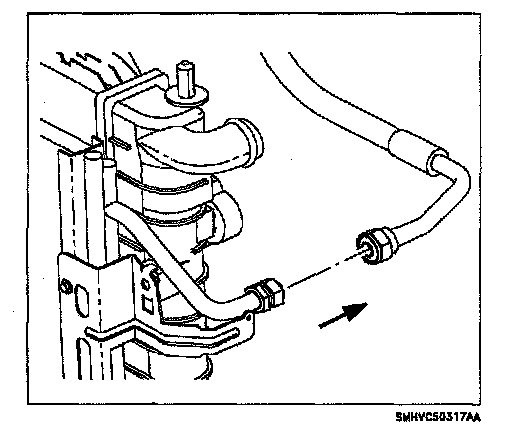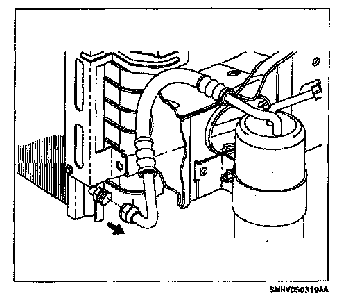 7. Remove receiver-dehydrator hose from condenser outlet.
