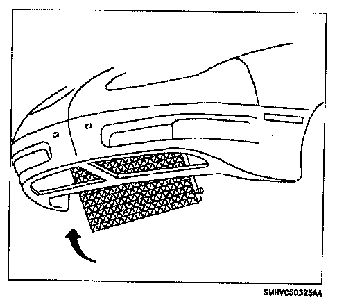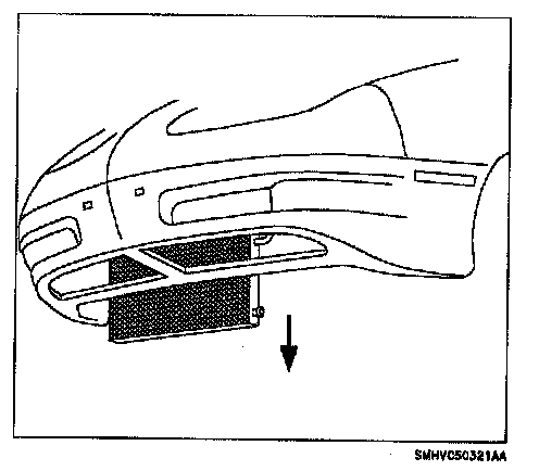 9. Facing the vehicle, pull the condenser back slightly to release it from the mounting pads. Carefully slide condenser straight down.