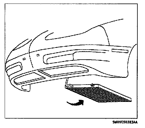 11. Rotate bottom of condenser rearward to unhook inlet pipe from the lower radiator mount. Remove condenser from vehicle.