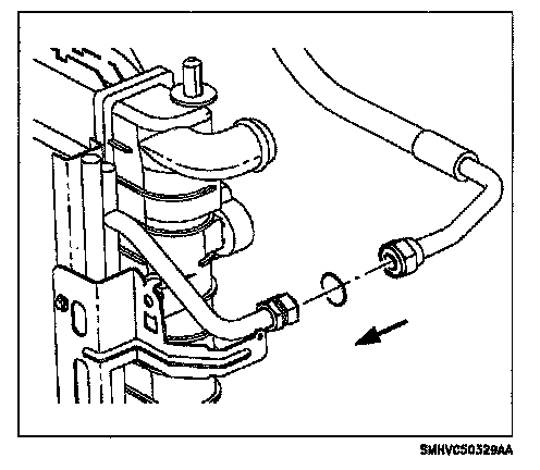 8. Lubricate and install new 0-ring on compressor discharge hose.