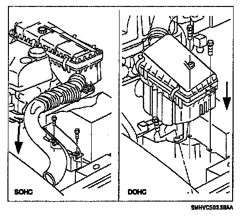 3. On SOHC (LKO) engines, remove air induction ducts.