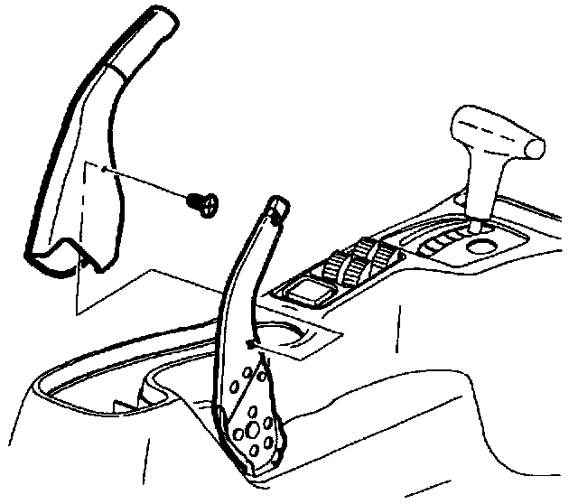 57. Lower rear of console over parking brake lever onto rear mounting pad.