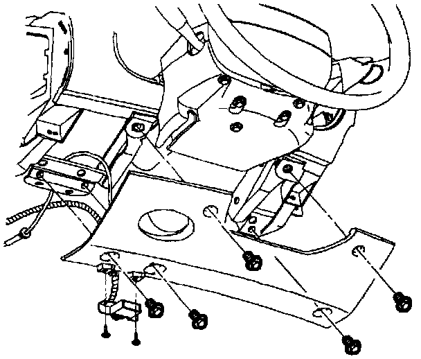 31. Connect ignition switch electrical connector at right steering column bolt.