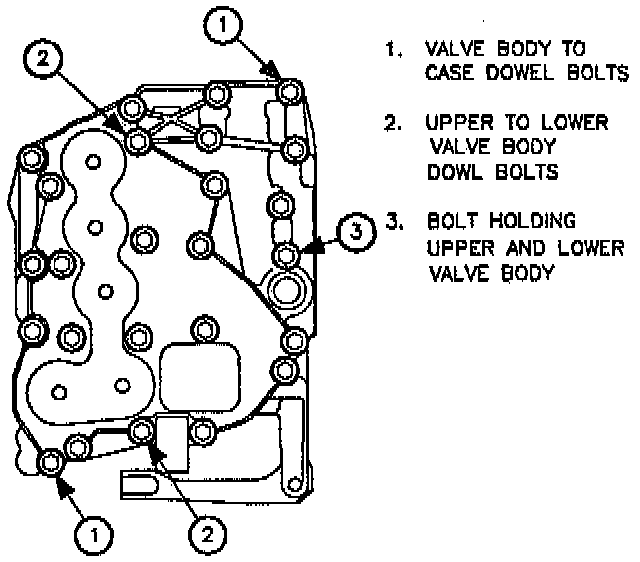 IMPORTANT: The dowel bolts must be placed in the holes shown to align the upper valve body to the lower valve body.