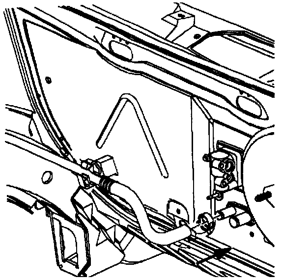 12. Install hose and clamp on heater core inlet. Position clamp at a 6 o'clock position.