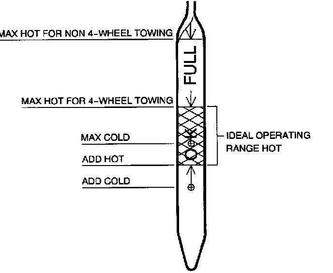 IMPORTANT: The "Add Cold" and "Max Cold" marks on the oil level indicator are for reference only. To determine the proper transaxle fluid level, it must be checked according to the procedures above.