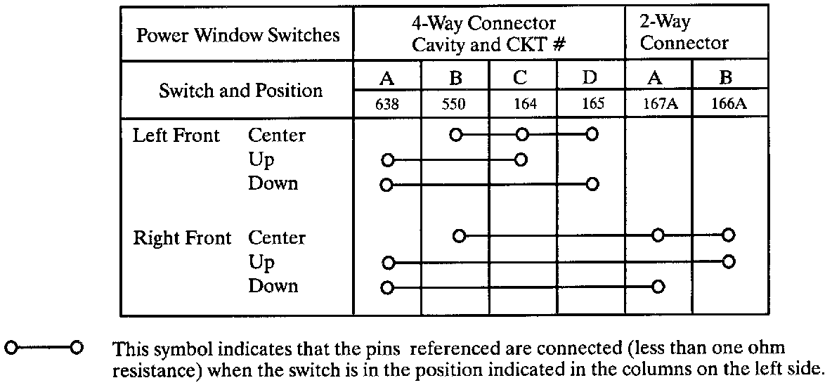 Power Windows Switch Continuity Check: