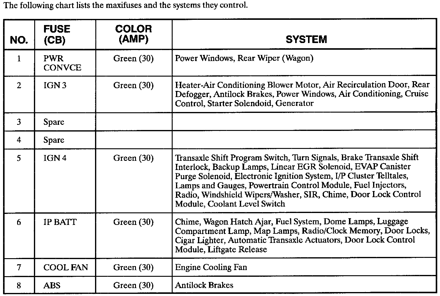 Underhood Junction Block Charts: Maxifuse To System Feeds: