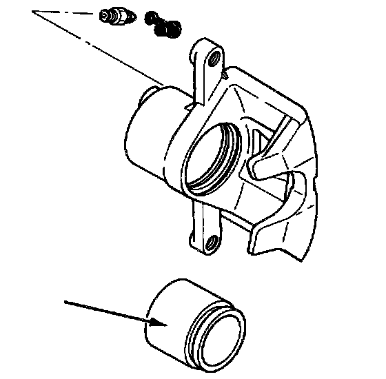 2. Remove piston from caliper body by applying low pressure, non-lubricated, compressed air into caliper inlet hole.