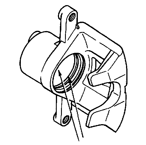 8. Inspect seal groove in caliper bore for nicks or burrs. If present, replace caliper.