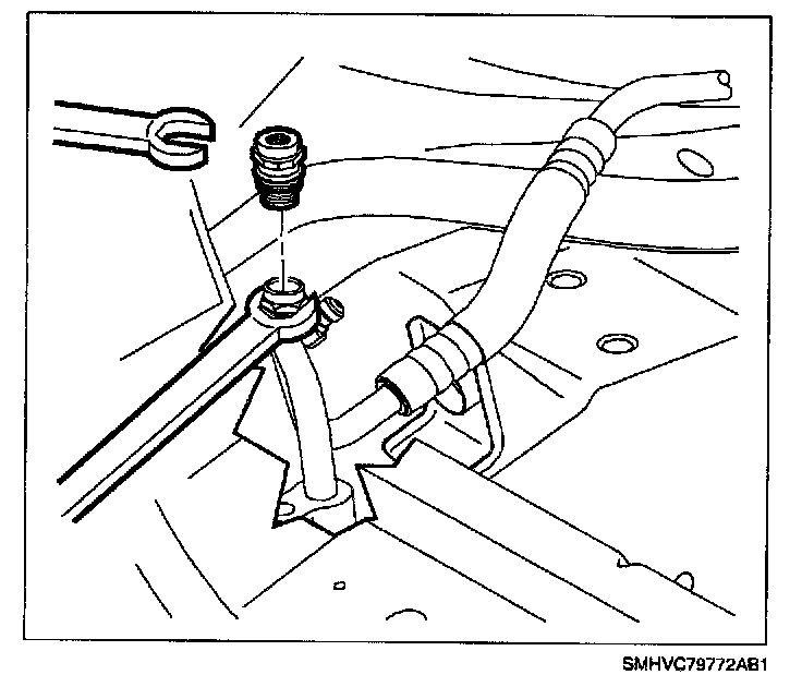 2. Using a back-up wrench to support service port base, use second wrench to remove valve assembly.