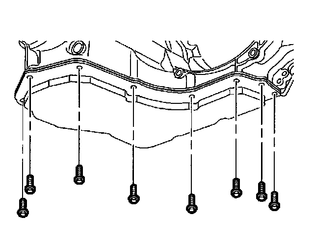1. Install oil pan gasket, oil pan, and hand start oil pan bolts.