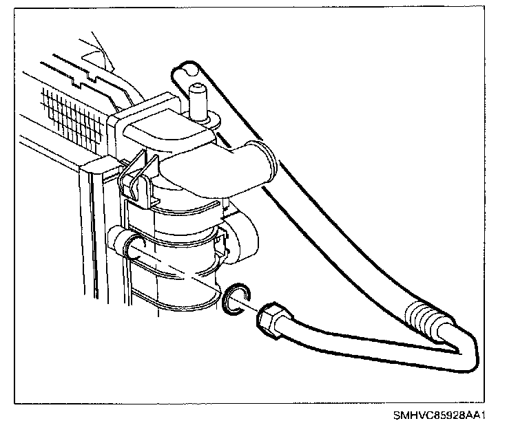 6. Remove receiver - dehydrator hose from condenser outlet.