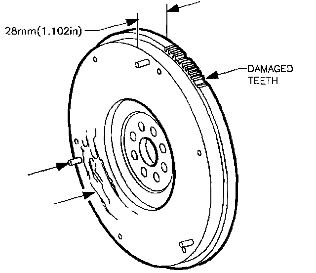 13. Check flywheel to clutch disc contact surface for wear, cracks, chatter marks, or overheating (indicated by blue discoloration). Repair or replace flywheel if necessary.