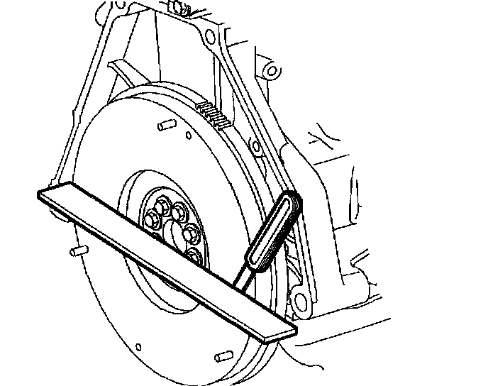 15. Check the flywheel for warpage using a straight edge and feeler gauge.