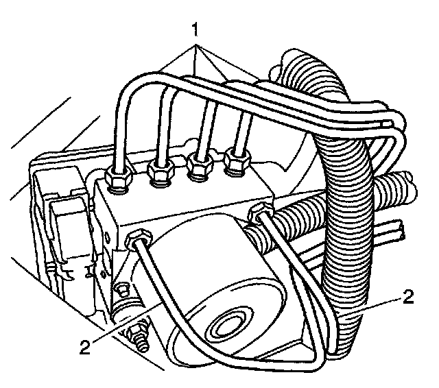 5. Connect the master cylinder brake pipes (2) to the modulator assembly, in the same location as removed.