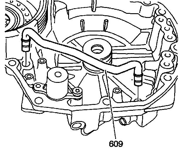 11. Using a plastic hammer if needed, install the 4-5 clutch apply pipe (609) into the transmission case cover.
