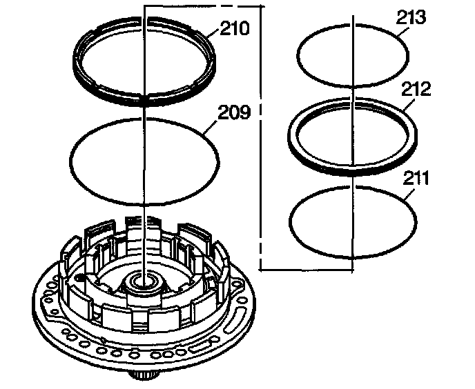 3. Install the new second clutch piston outer seal (209) onto the second clutch piston (210).