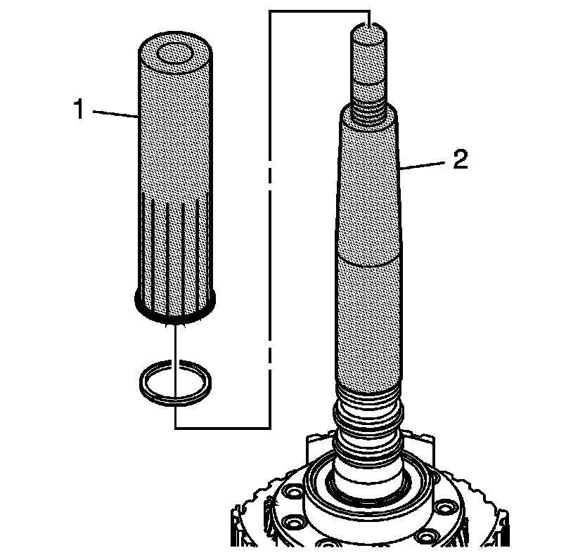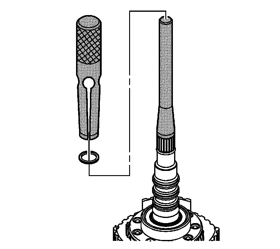 Slide the J43063-1 (2) over the input shaft and position the J43063-1 at the appropriate seal groove. Coat the J43063-1 with transmission fluid.