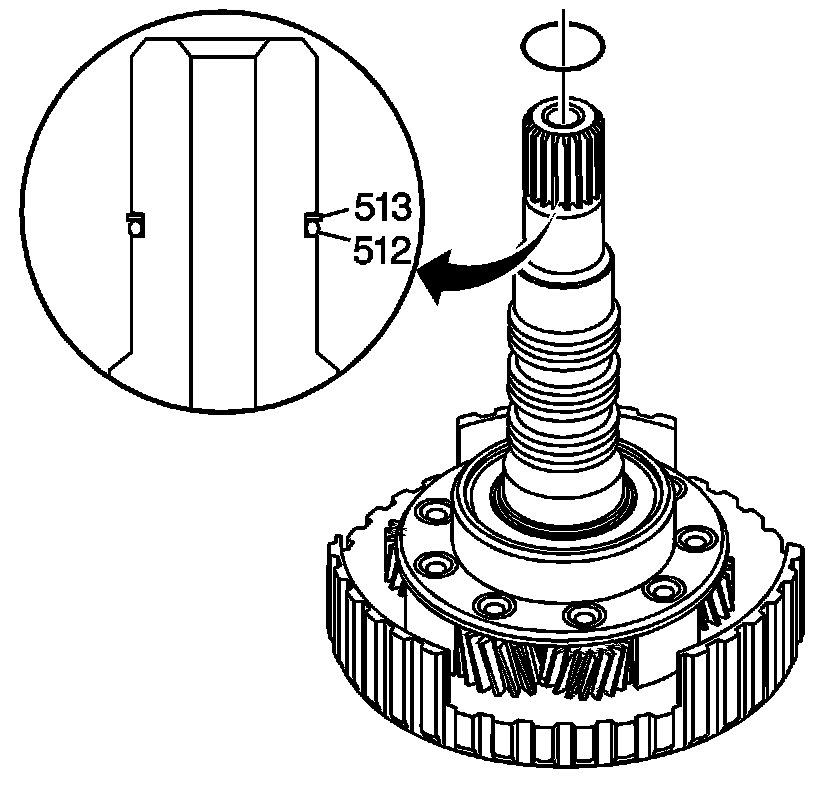 25. Important: Ensure that the input shaft O-ring seal (512) is positioned below the fluid seal ring - split spiral ring (513).