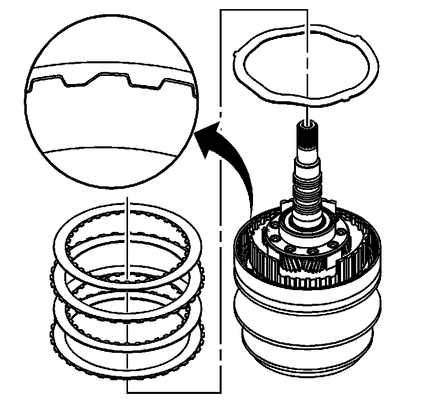 Important: Install the forward clutch plates with the friction material facing up, towards the backing plate.