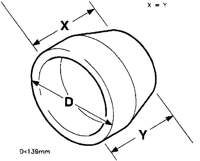 2. Make sure correct "bell clamps" are used to mount rotor on brake lathe. Some bell clamps may appear to fit flush inside rotor, but actually they may be too large, forcing rotor to "wobble" when it turns on brake lathe. (Bell clamp outside diameter ["D"] must be less than 139 mm (15.47 inch). If a rotor does not turn on a plane that is parallel to brake lathe's cutting tip, lateral runout will be machined into rotor.
