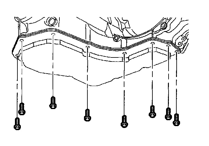 8. Remove all traces of old gasket material. Clean transaxle case and oil pan gasket surfaces with solvent, and allow to air dry.