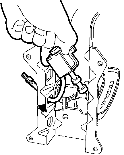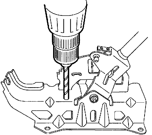 4. Using a 5/32 inch drill bit, drill out rivet attaching solenoid to control assembly.