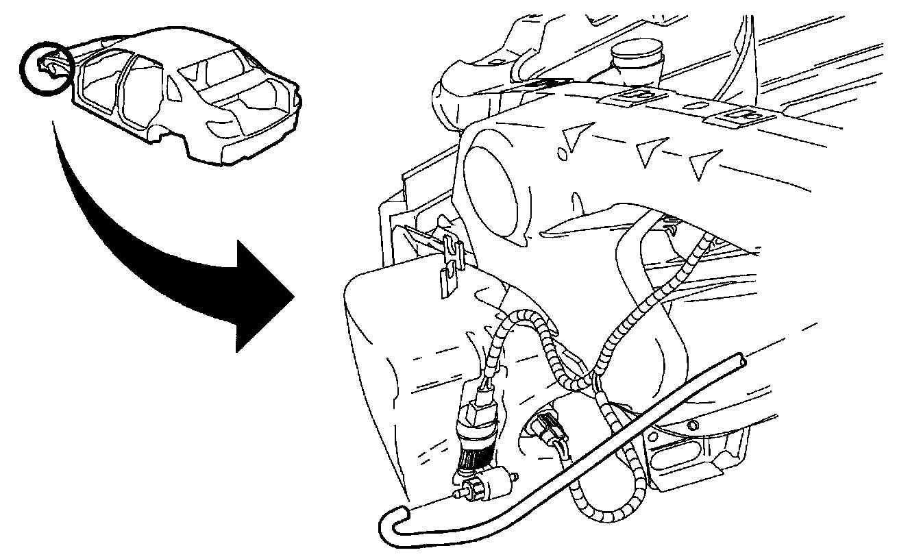 REMOVAL1. Open hood and disconnect front washer hose at pump and plug outlet port.