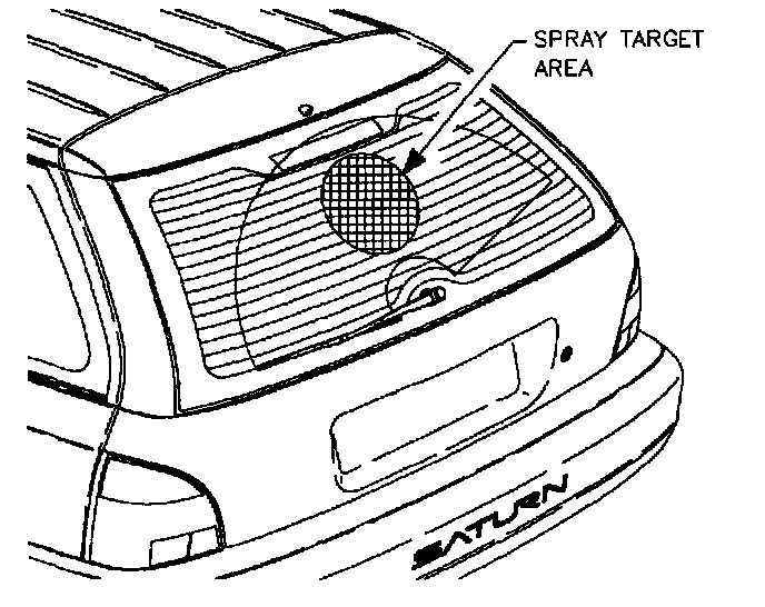 REAR WASHER NOZZLE ADJUSTMENTWasher nozzle adjustment can be made by placing a pin, tack or equivalent pointed tool into the hole in center of the washer nozzle and pushing or pulling in the desired direction. Retest spray pattern after adjustment is performed.