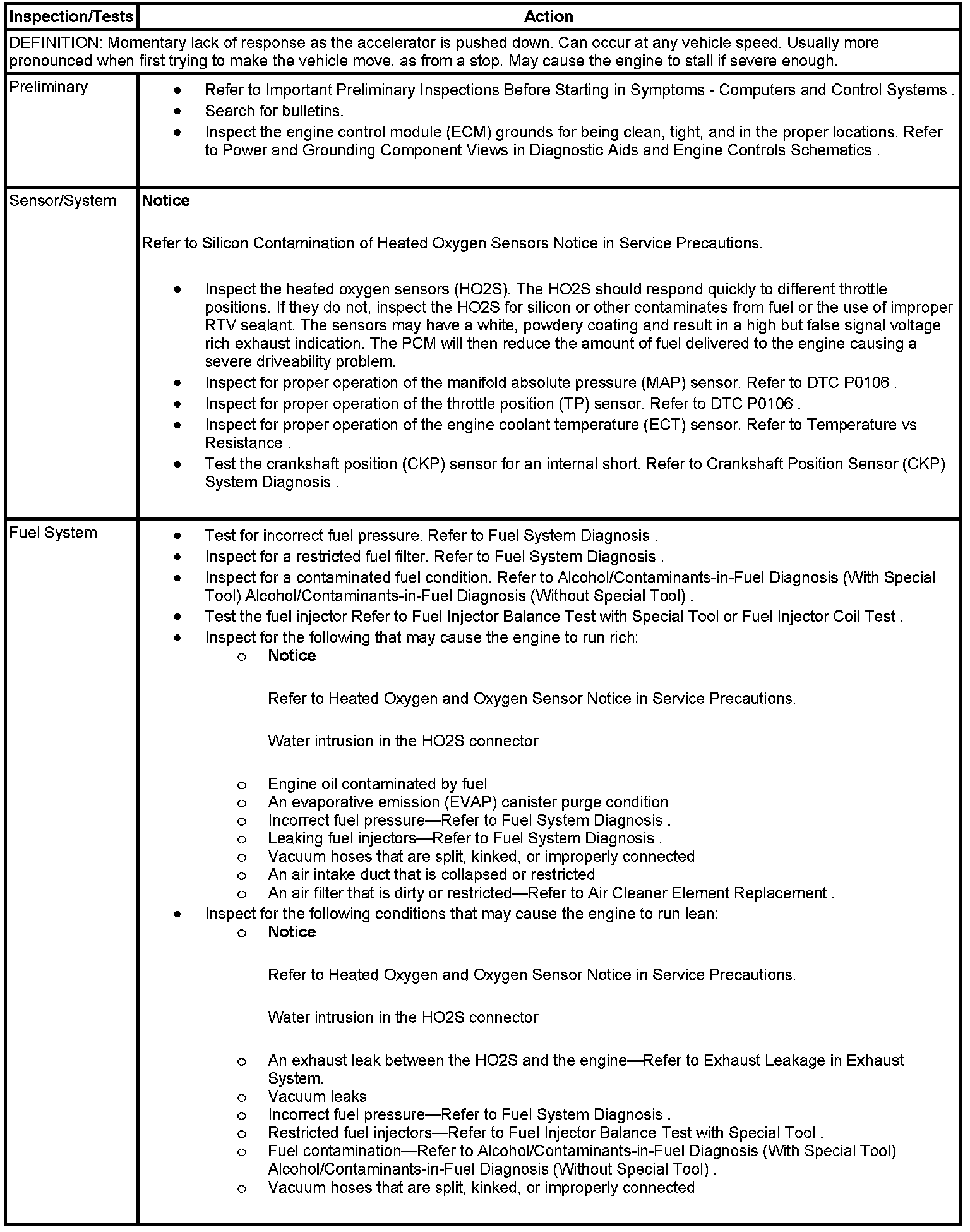 Hesitation, Sag or Stumble