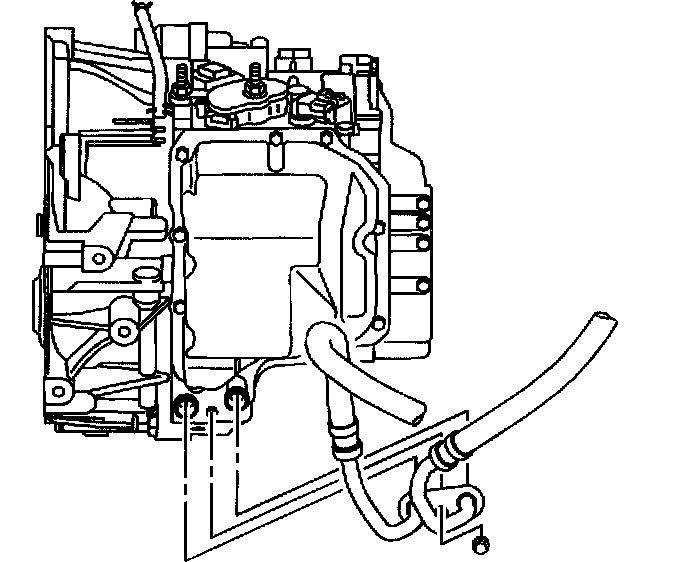 5. Remove the transmission cooler line assembly nut from the transmission.