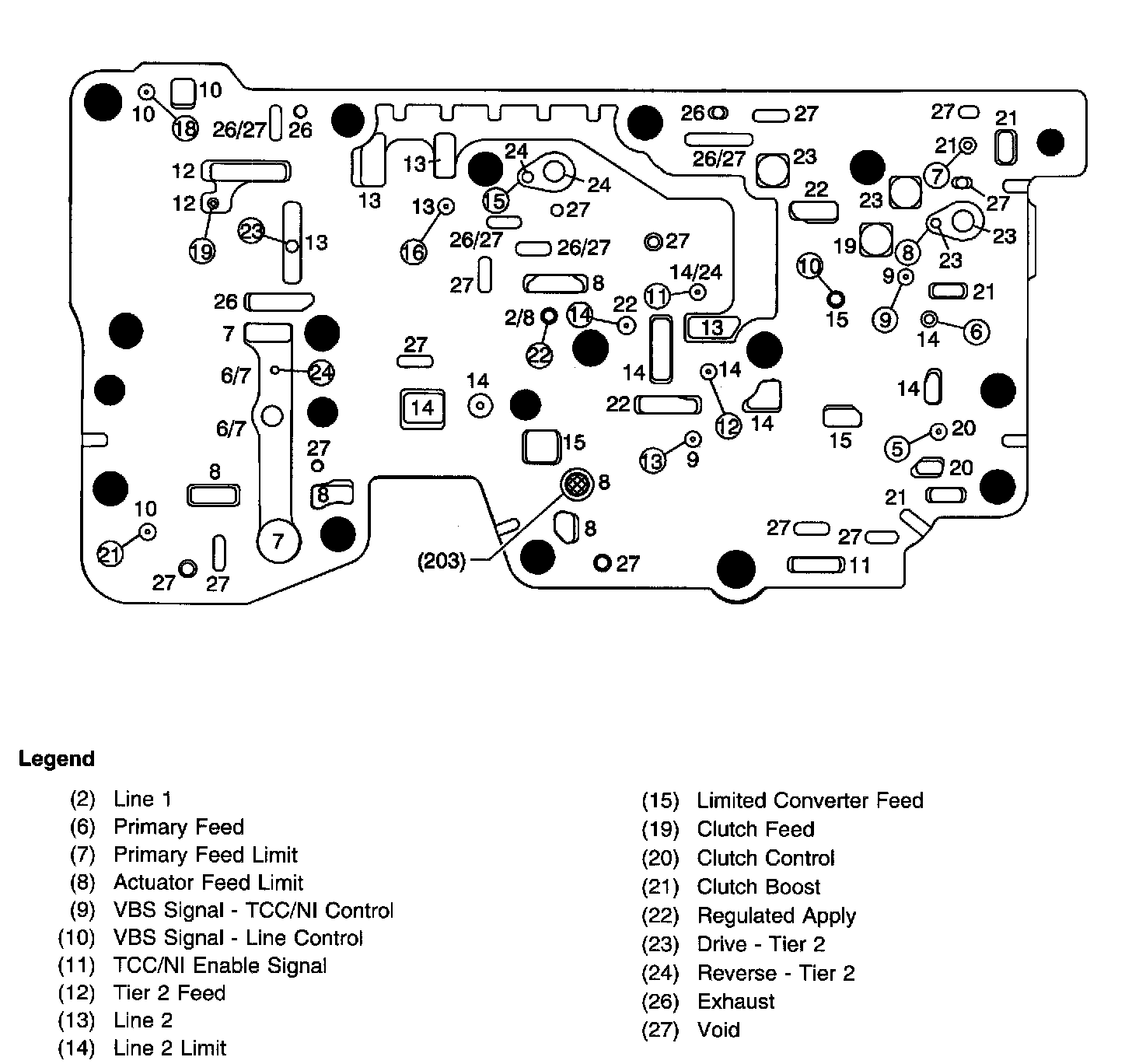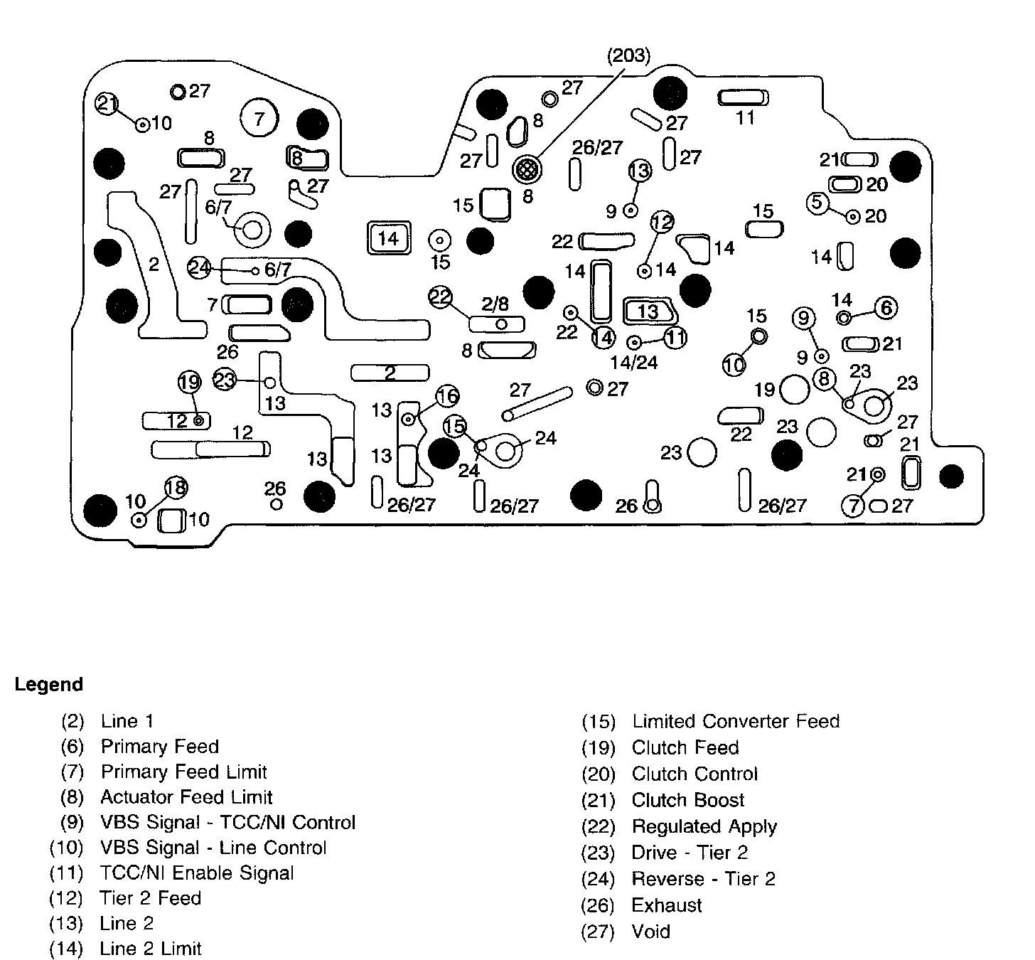 Control Valve Body Assembly (207) - Control Solenoid Valve Assembly Side Passages