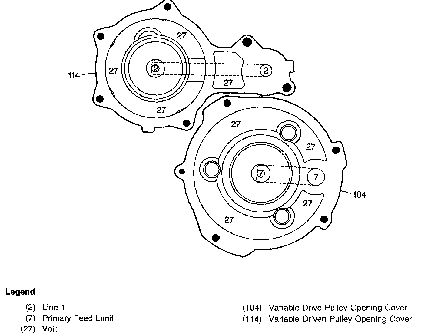 Pulley Opening Covers (114 and 104) - Transmission Case Cover Side Passages