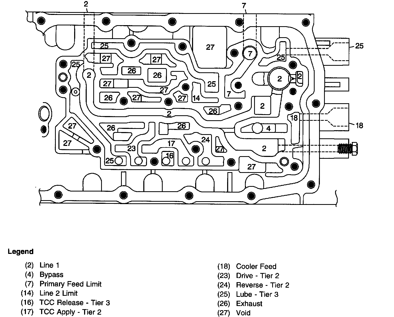 Control Valve Body Assembly (207) - Transmission Case Assembly Side Passages