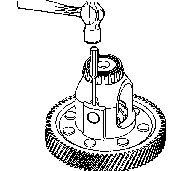 Front Differential Carrier Disassemble1. Using a small punch and a hammer, remove the pinion gear shaft pin from the front differential carrier assembly. Discard the pin.