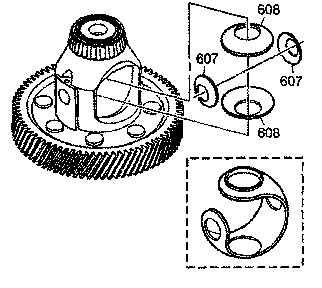 Important: There are two different thrust washer designs, a 1 piece design and a 4 piece design. Note the orientation of the plastic thrust washers for reassembly into the front differential carrier assembly.